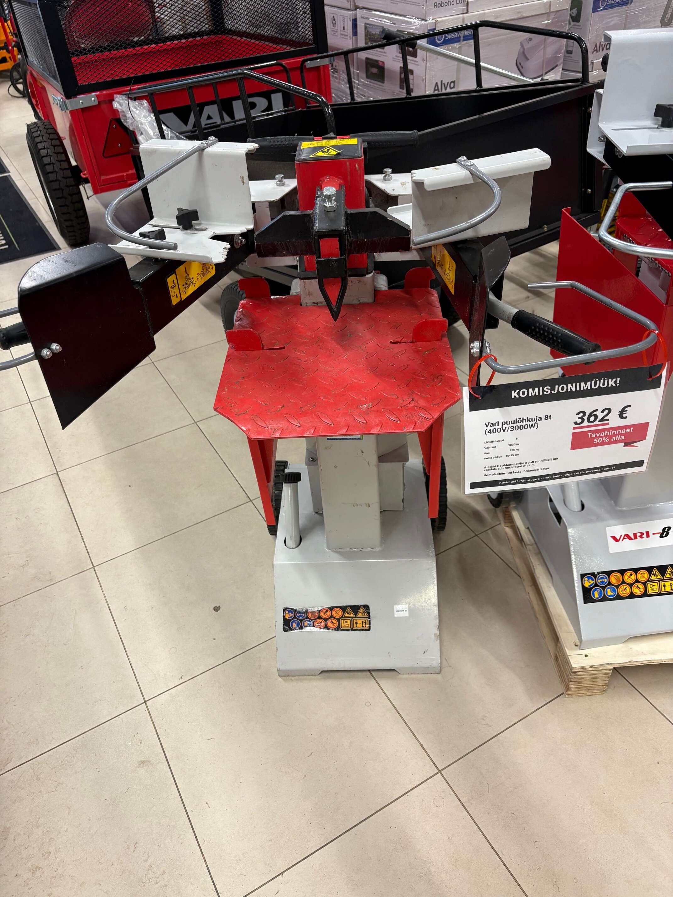 VARI 8 TON SUPER FORCE 400 V/ 3000W on vastupidav masin, mis on mõeldud puidu töölemiseks, mida ei saa kirvega lõhkuda.