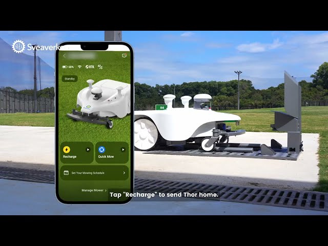 Sveaverken Thor robotniiduk on suurepärane lahendus golfiväljakute, spordiväljakute, parkide ja avarate kinnistute täpseks hooldamiseks.