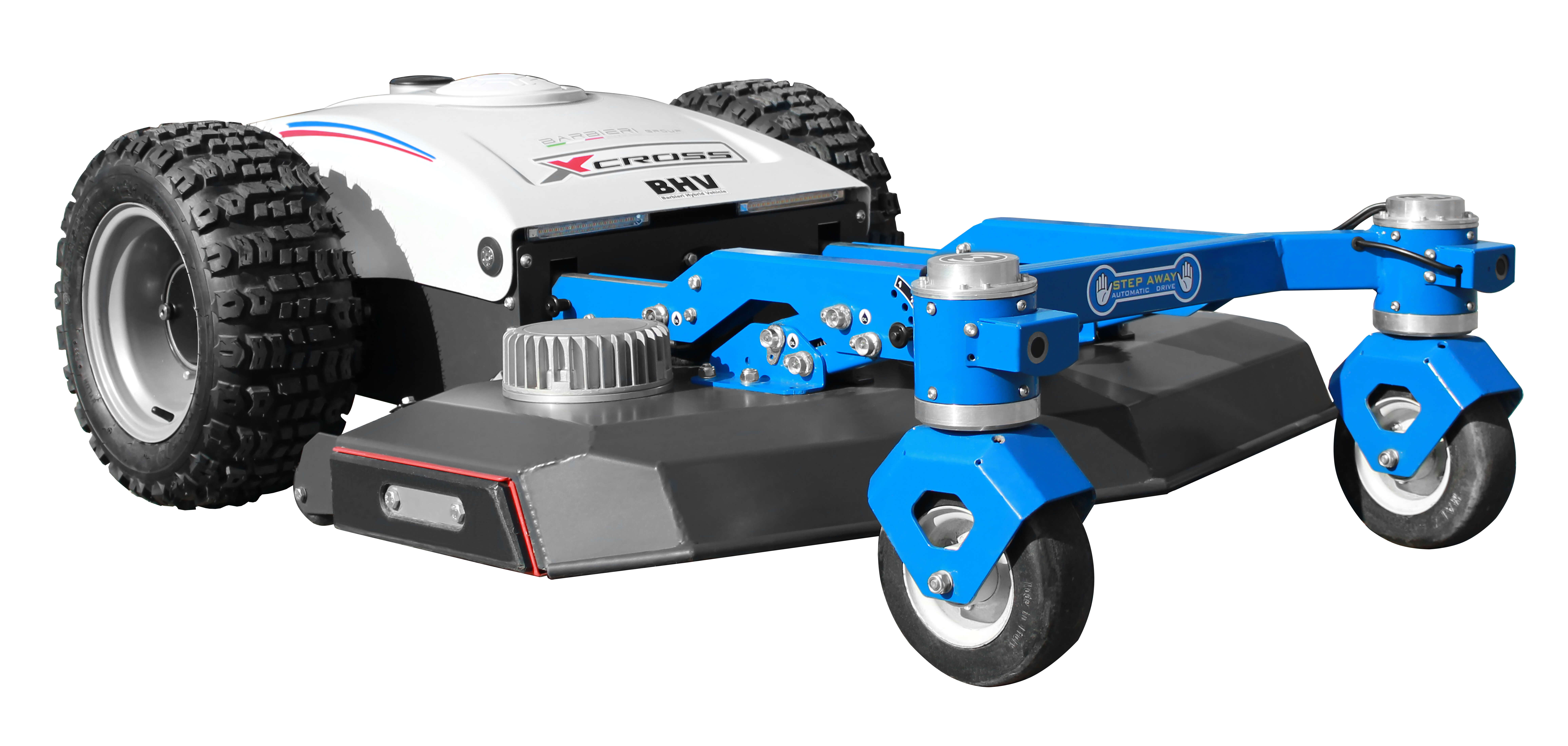 Täiselektriline esikorpusega kaugjuhitav nõlvaniiduk BARBIERI X-Cross. Antud 48 cm kõrgusega hooldusniiduk saab tõeliselt hästi pea kõikjal niita, isegi kõige kitsamates ja ka madalates kohtades!