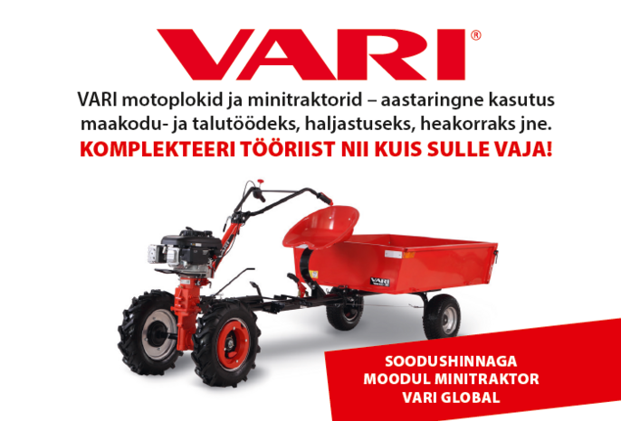 Tule tutvu VARI Global moodul-mintraktori komplektiga Aiatähe esindustes SAKUS (Tehnika 7) ja PEETRIS (Tallinna piiril, Tuleviku tee 10) kohapeal!